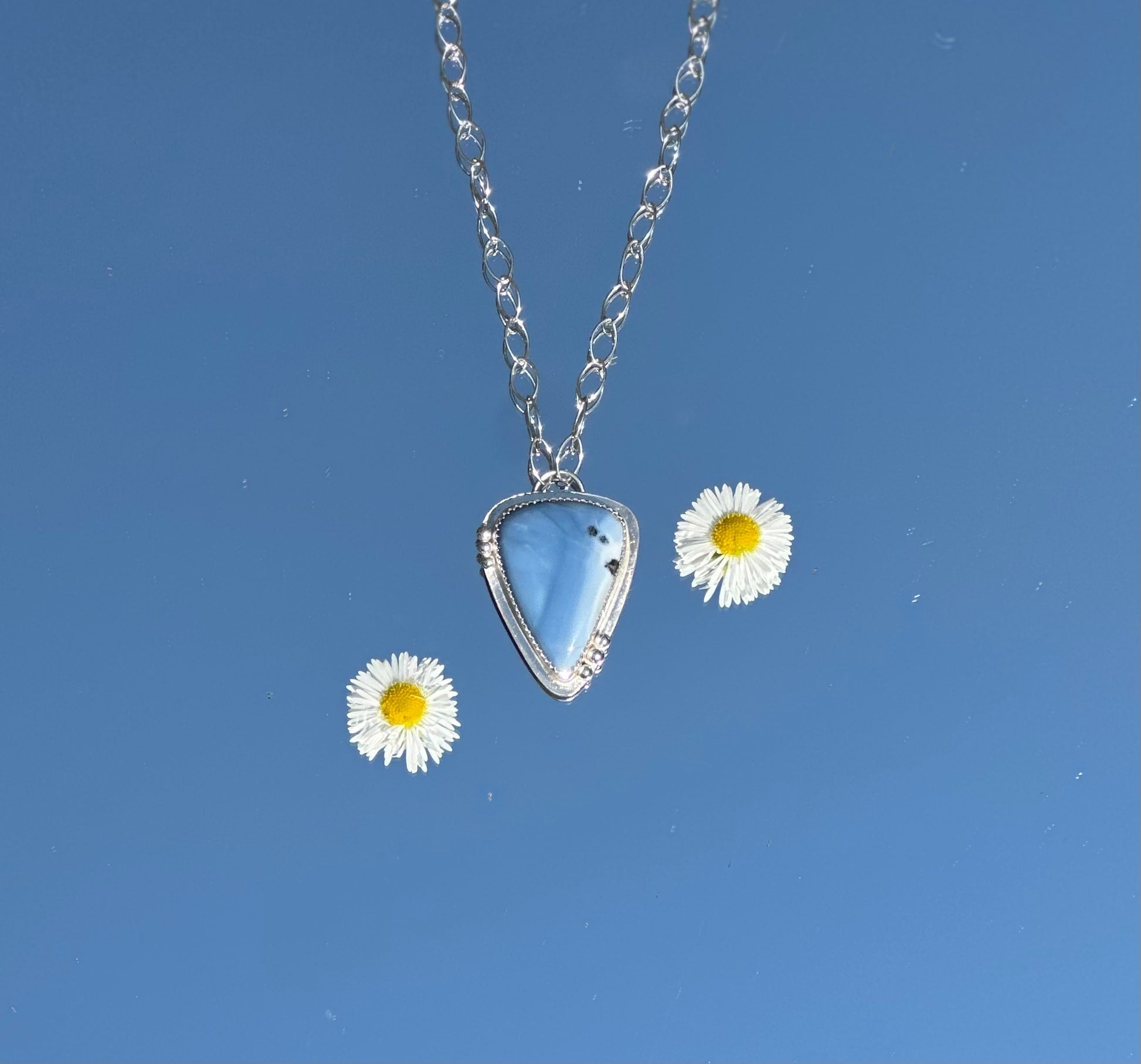 The Natural Opal Necklace is crafted with care and is a unique, handmade piece that will set you apart. Each one is one-of-a-kind, just like you. Experience the beauty and rarity of opals, expertly made into a stunning necklace featuring sterling silver.